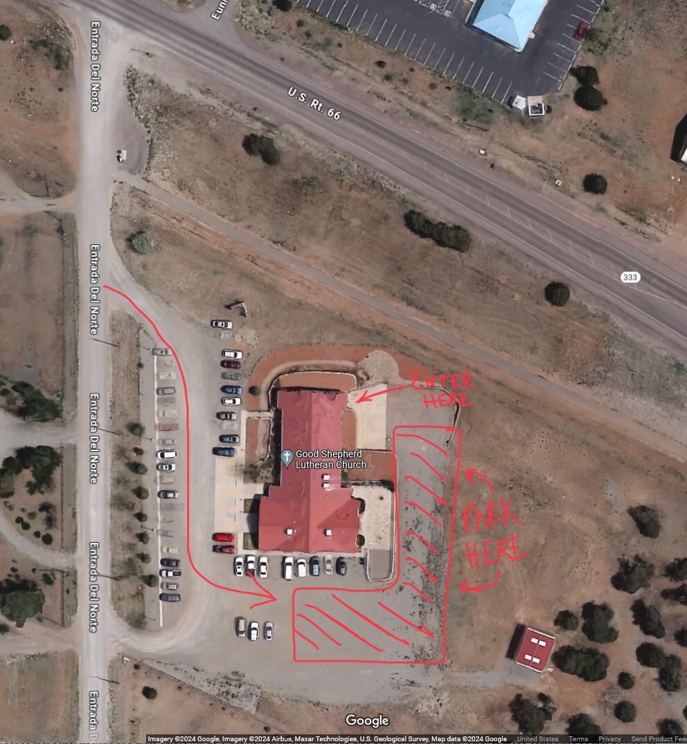 We have arranged to make use of the nice meeting room in the basement of Good Shepherd Lutheran Church. Those attending chapter meetings should park in the general areas outlined below and enter through the back basement entrance shown for that meeting space.  For a full resolution photo click here: new-location-2024-church.jpg (1127 downloads )